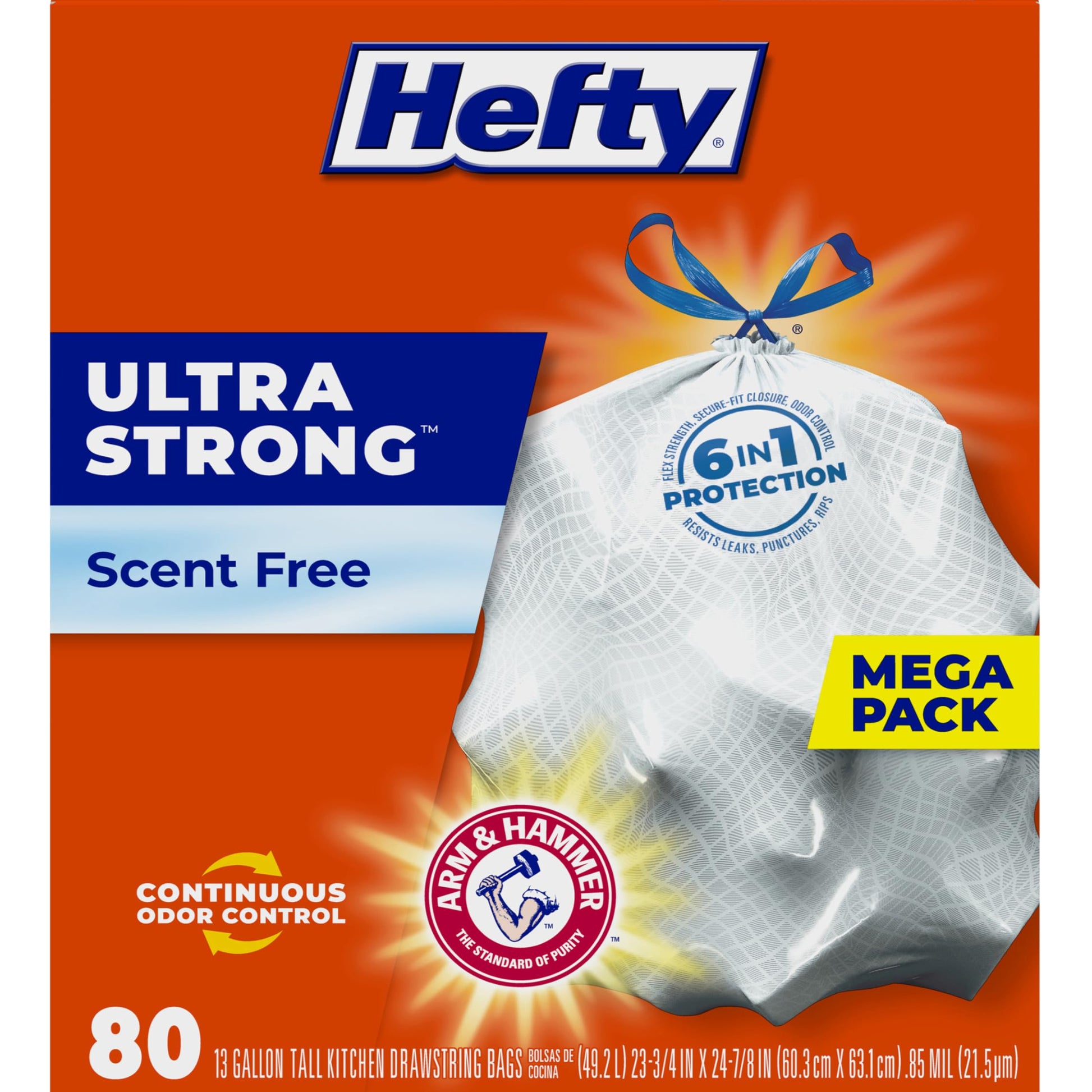 Hefty Ultra Strong Tall Kitchen Trash Bags, Unscented, 13 Gallon, 80 Count